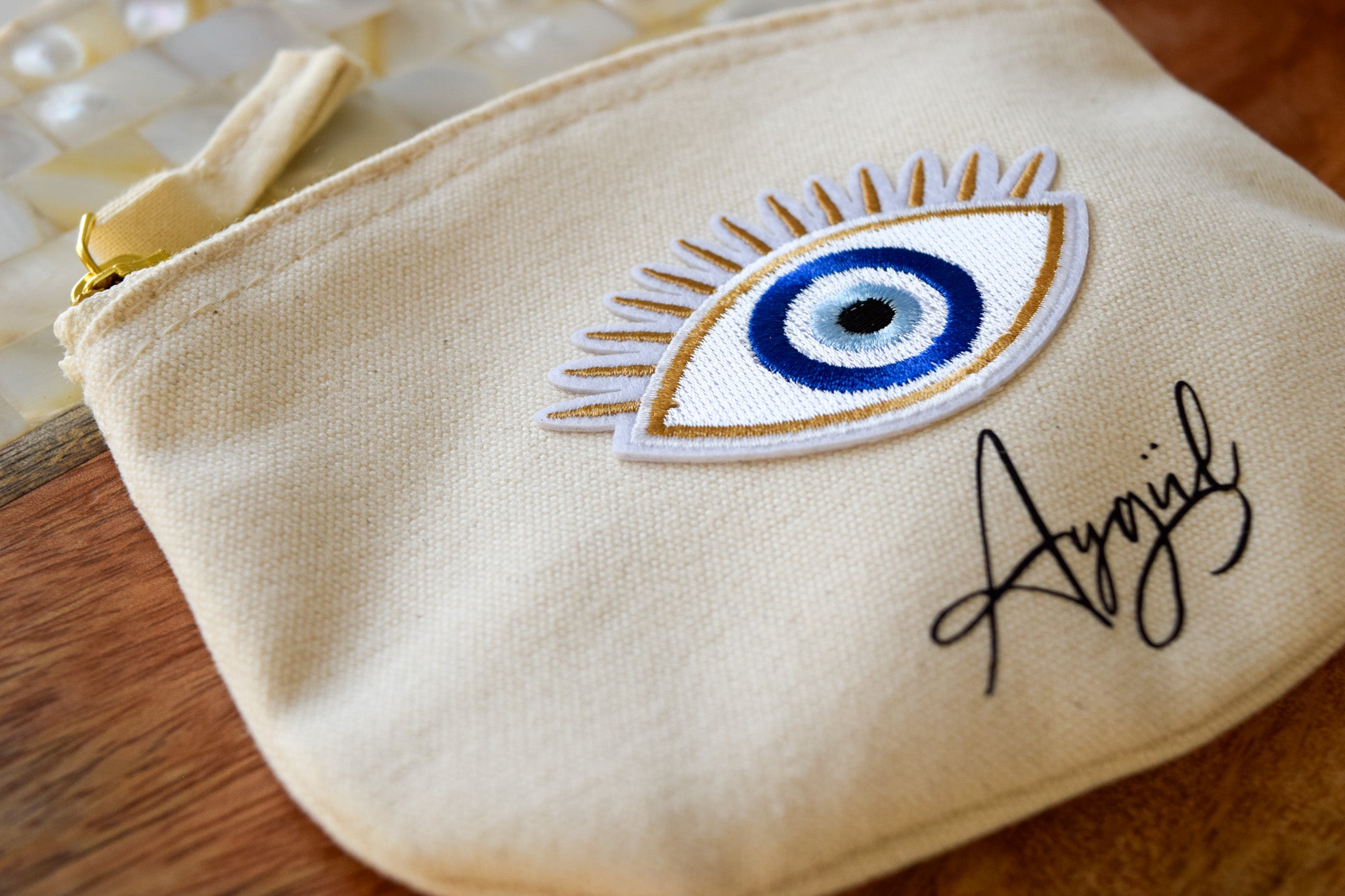 - Mit Nazar-Patch und Schrift: Eine Kombination aus Schutzsymbol und Deinem persönlichen Stil.